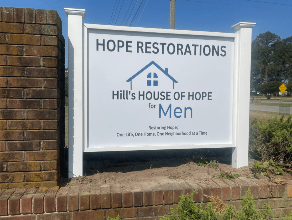 After the establishment of the House of Hope for Women, Hope Restorations urgently needed placement for male participants. The Hill family of Kinston generously donated a facility that was previously a nursing home. With grants awarded from The Duke Endowment and others, Hope Restorations began renovations to transform the clinical facility into a welcoming, homey environment. The Refuge of Ayden, NC volunteered their time to paint the exterior (pictured below).